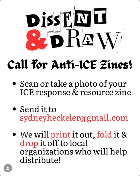We can come together through art to speak about these issues we’re facing as a community. Whether it’s lack of housing, social security, SNAP, medical care, ICE operations, disability; whatever you need to say loudly, feel free to say it louder. We support your feelings, your hardships, and your triumphs. It may seem like everything is designed to make us afraid. But let us join together, support each other in our community with open hearts and open hands. We are reaching out a hand in courage, and invite you to hold on tightly.