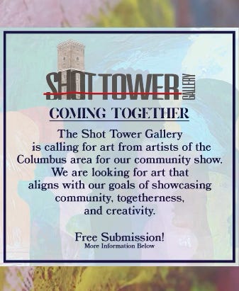 The Shot Tower Gallery is calling for art from artists of the Columbus area for a community show. They are looking for art that aligns with their goals of showcasing community, togetherness, and creativity. Free to submit!