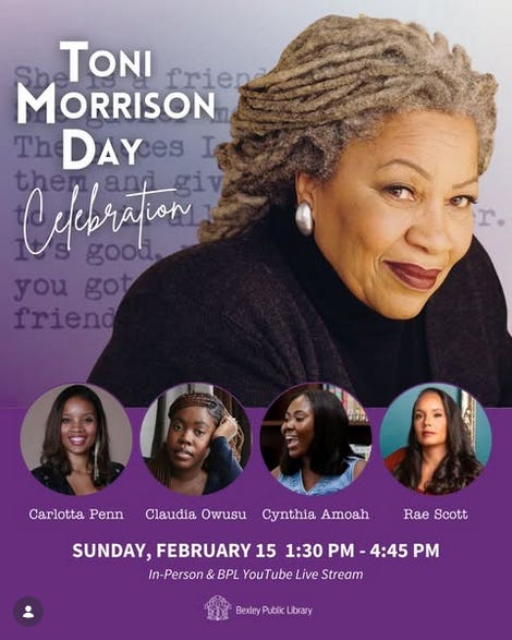 Bexley Public Library is hosting a special afternoon celebrating the life, words, and legacy of Toni Morrison, featuring readings from four incredible local local authors and artists.