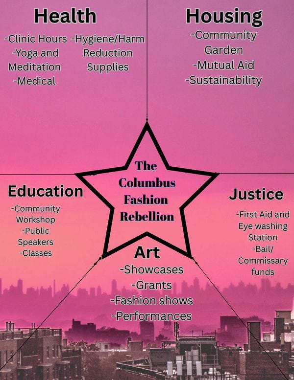 Columbus Fashion Rebellion exists to disrupt the status quo of fashion and the fascist agenda by centering the creativity, voices, and bodies of those ignored by mainstream entities.
